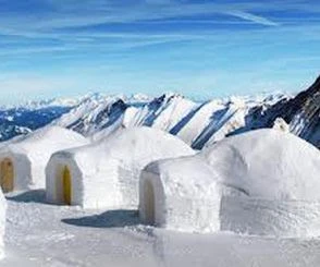 Petite animation à la station de Pelvoux avec un igloo et des sculpture de glace à visiter. Crèperie, expositions et animation pour les enfants. 3€
